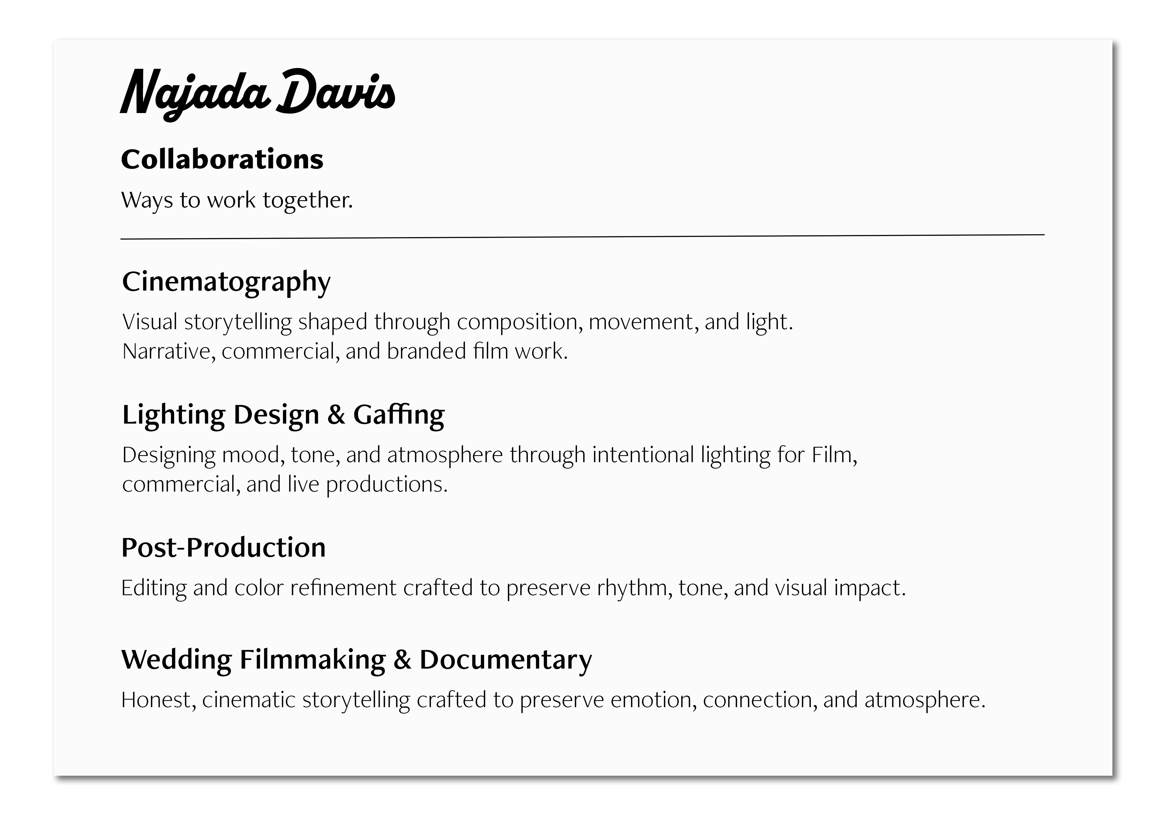 If you have a story to tell, a brand to elevate, or a moment worth preserving, I welcome the conversation.