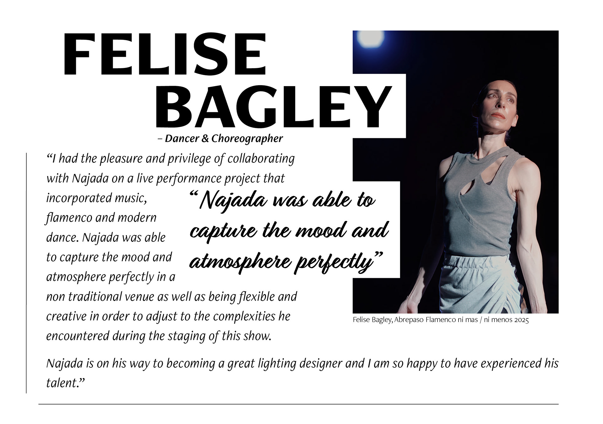 A short reel showcasing some of Najada's work.